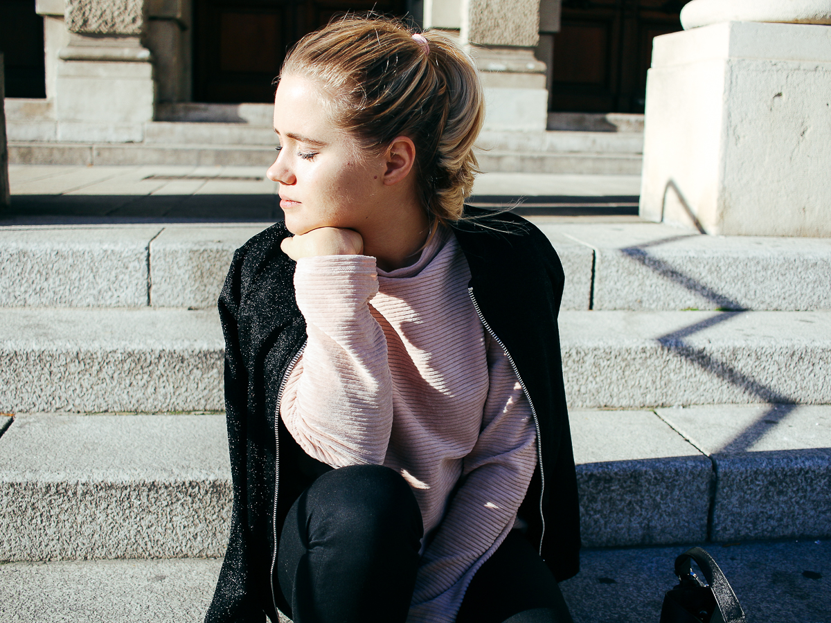 Als wir das Topic für diese 7 Ways To Wear Woche festgelegt haben, war ich anfangs ein bisschen skeptisch und vor allem auch besorgt, ob ich denn etwas in Samt finden würde, das mir auch tatsächlich steht. Versteht mich nicht falsch, ich finde den aktuellen Samt Trend absolut cool, aber vorwiegend an anderen. Ich weiß einfach nicht ob eine Samtlegging an mir so sexy aussehen würde :P Als ich mich dann vor zwei Wochen auf die Suche nach einem coolen Samt-Teil gemacht hab‘, ist mir dann Gott sei Dank dieser schöne Pullover bei Bik Bok untergekommen :) Gepaart mit einer schwarzen Skinny Jeans, meiner neuen Glitzer Bomberjacke und meiner Lieblings-Bucket-Bag entsteht das perfekte Sophitschgie Outfit ♡ Wie gefällt’s euch?